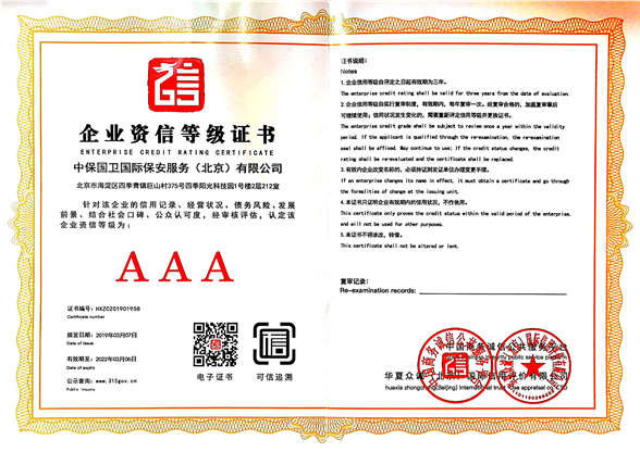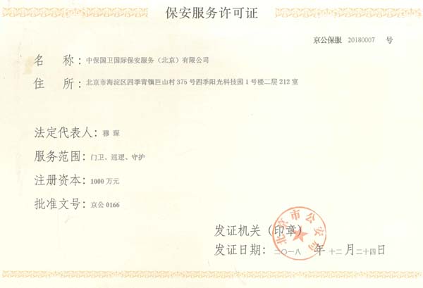 中保國衛(wèi)國際保安服務(wù)(北京)有限公司,屬中保國衛(wèi)集團(tuán)旗下子公司。能全方位的為大型客戶提供優(yōu)質(zhì)的安保、押運(yùn)服務(wù),是集人防和技防于一體的新型正規(guī)化綜合安保押運(yùn)服務(wù)企業(yè),提供人防、物防、技防、聯(lián)網(wǎng)報(bào)*、非武裝押運(yùn)等安防相關(guān)的一站式服務(wù)。 公司在國內(nèi)多省設(shè)立有分公司及分支機(jī)構(gòu),著重提升安全押運(yùn)、智能技術(shù)押運(yùn)及安全技術(shù)防范相關(guān)的服務(wù),業(yè)務(wù)范圍覆蓋全國一、二線城市、港澳地區(qū)以及海外地區(qū)。安保方面主要為政府機(jī)構(gòu)、金融機(jī)構(gòu)、企事業(yè)單位、醫(yī)療衛(wèi)生、高等院校、工業(yè)園區(qū)、大型商場、高檔住宅、智能商務(wù)樓、大型活動(dòng)提供門衛(wèi)、守護(hù)、巡邏、押運(yùn)(非武裝)、安全檢查、保安特勤、私人護(hù)衛(wèi)、消防中控、安全技術(shù)防范、遠(yuǎn)洋護(hù)航等全方位服務(wù),同時(shí)面向國際市場,為中資企業(yè)在“一帶一路”沿線國家投資提供境外安保服務(wù)。 >> 更多內(nèi)容 |